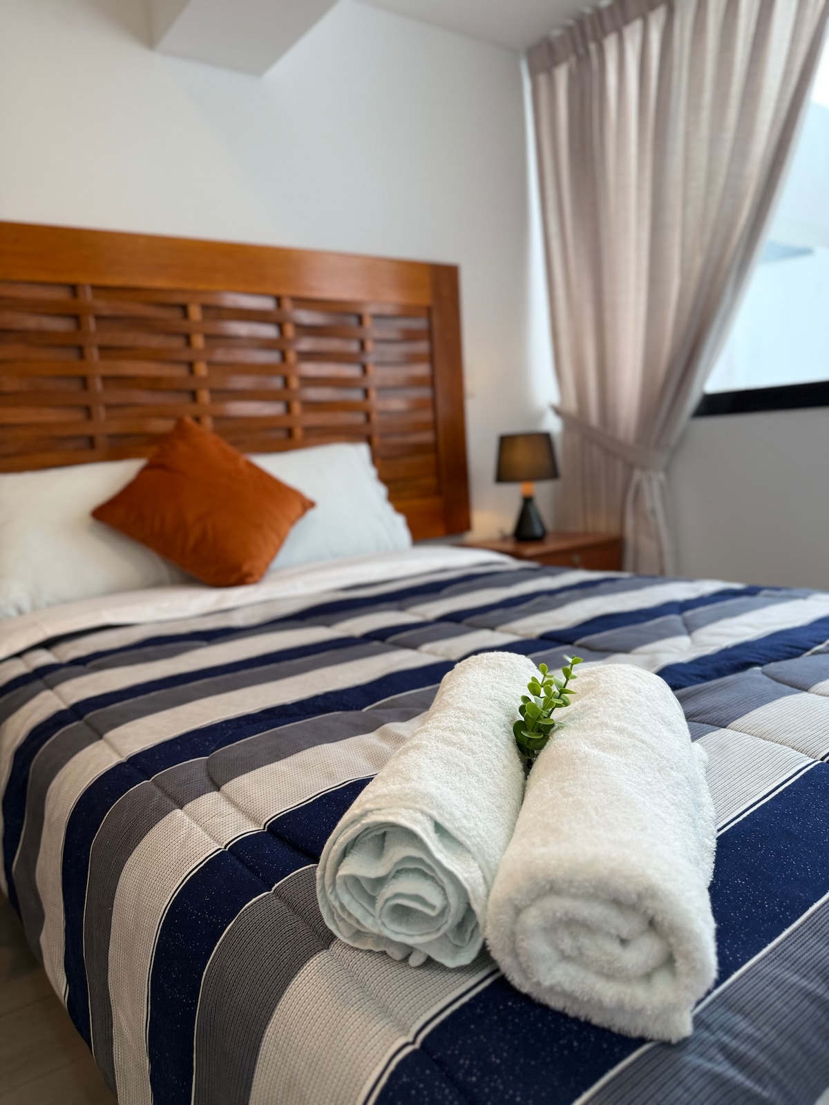Enjoy a premium experience in this modern, fully equipped apartment. ✨ We offer: • Queen-size bed • 55” TV in the living room and 43” TVs in the bedrooms • Private balcony with panoramic city view • Fully equipped open-plan kitchen • Warm LED lighting and modern designer décor • Common areas with coworking space, terrace, and outdoor gym 🌟 Ideal for: Couples, business travelers, digital nomads, or tourists who value design, cleanliness, and the overall experience.