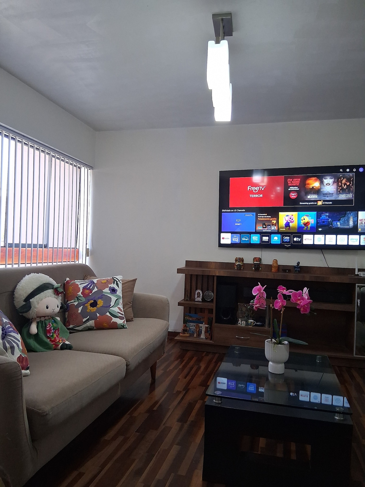 En la mejor zona residencial, cerca a supermercados, boulevard de restaurantes y cafeterias.Con Internet de alta velocidad,tv de 65" y 3 amplias habitaciones para 5 huéspedes. Cocina amplia con mesa de vidrio,cafetera eléctrica, licuadora,refrigerador y menaje de cocina.Therma y lavadora incluida.Un ambiente familiar con amplias habitaciones y espacios.A menos de 50 mts del parque grande de California y rápido recorrido al aeropuerto.