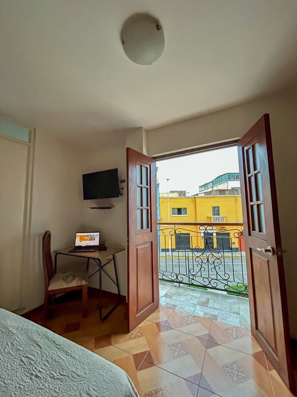 CENTRICO, ACOGEDOR Y DE ESTILO COLONIAL . Todas nuestras habitaciones tienen vista a la calle, baño privado con agua caliente, tv cable y wi - fi, el primer piso cuenta con una cafetería a disposición de nuestros huéspedes (microondas, refrigeradora, cocina y vajilla completa). Estamos dentro del centro histórico y a solo a 4 cuadras de la plaza de armas de Trujillo , cerca de restaurantes, bancos, Estadio Mansiche, Coliseo Gran Chimú y Piscina Olímpica. De fácil acceso a transporte publico.