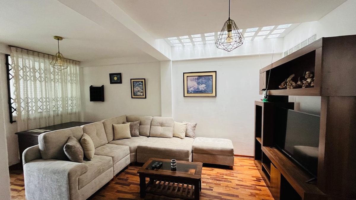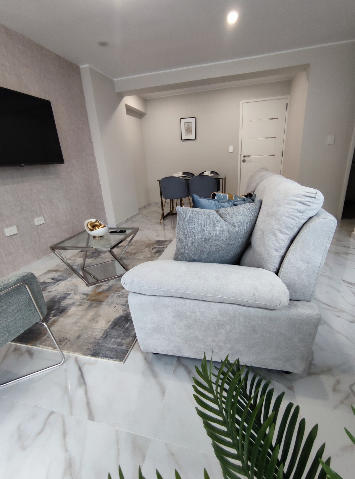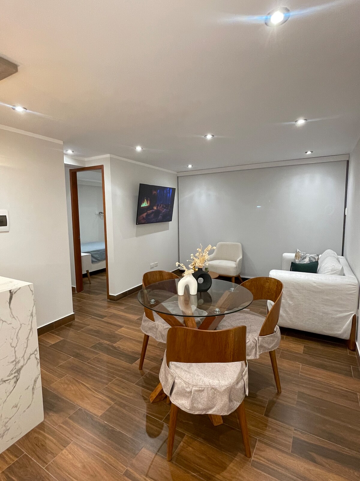 Disfruta de este departamento totalmente amoblado, ubicado en una zona segura, tranquila y céntrica. A unos minutos de centros comerciales, restaurantes, gimnasios, parques y demás. Asimismo, cuenta con distintos servicios que te garantizarán una buena estadía.