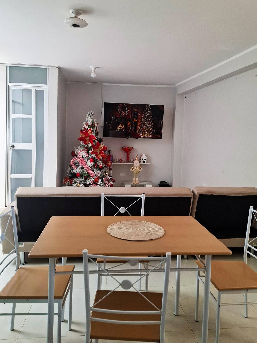 ¡Tu refugio ideal en Huánuco! Amplio departamento con sala de estar, Smart TV 55", sala, comedor y cocina equipada. Disfruta de total comodidad: 2 habitaciones con camas de 2 plazas (principal con baño privado), baño social completo y lavandería con lavadora de 15kg. Perfecto para familias o grupos de hasta 5 personas que buscan confort, equipamiento completo y una estancia impecable. ✨