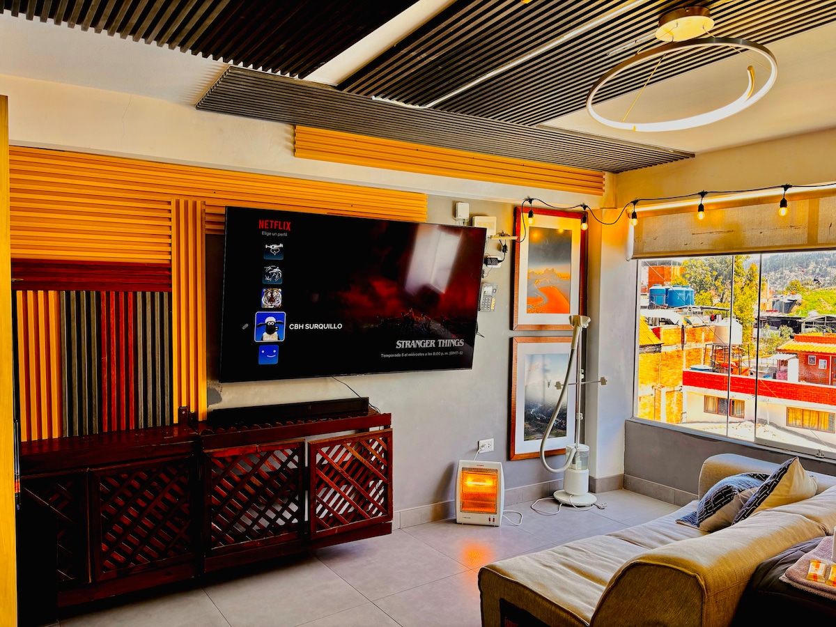 Bienvenido a nuestro encantador y moderno apartamento situado en el centro de la cuidad de Huaraz, a una cuadra de la plaza de armas. Es el refugio perfecto para personas y familias que buscan explorar la ciudad sin sacrificar la comodidad, ideales para garantizar un descanso total. Todo lo que necesitas está aquí, simplemente llega, relájate y disfruta de la ventaja de estar cerca de todo y tener una estancia inolvidable. ¡Tu escapada perfecta comienza aquí!"