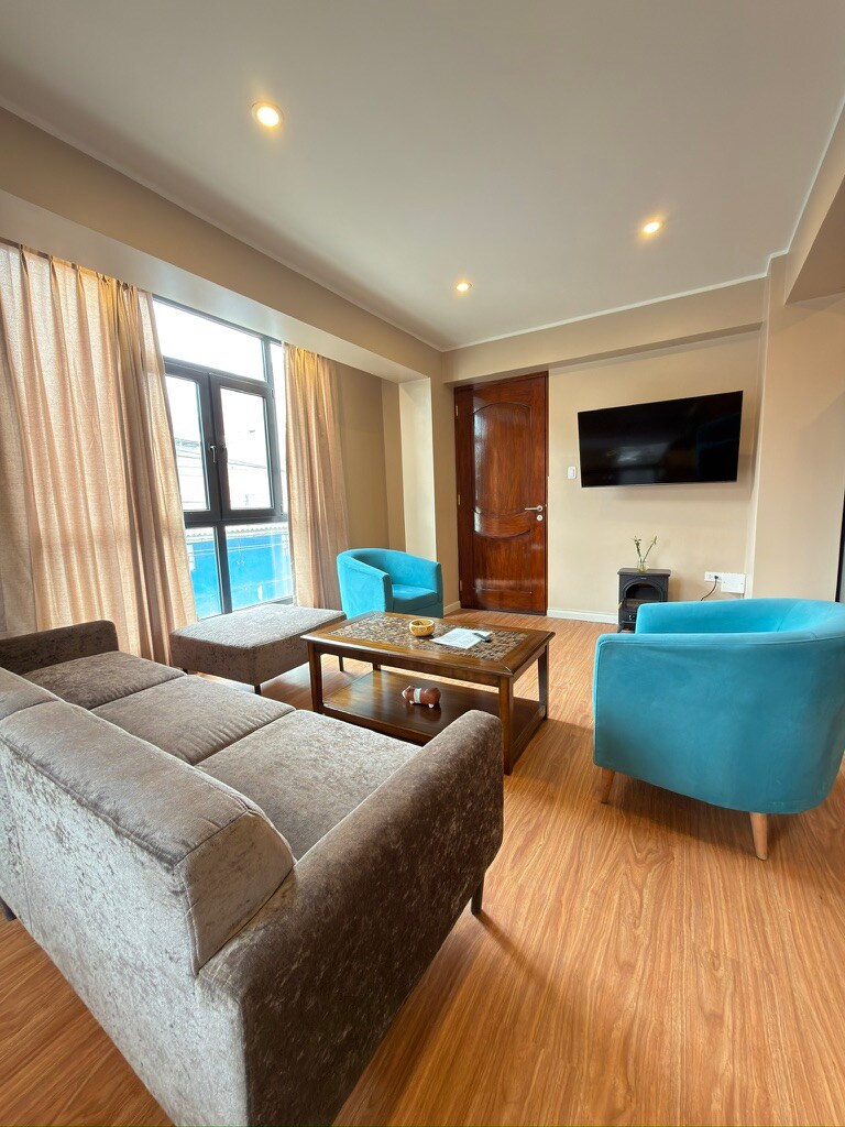 Built in 2026 this spacious, modern, upscale 3 bedroom condo is fully equipped. Includes 2 queen sized and 2 twin beds, 4 bathrooms, full kitchen all new appliances, PVC noise-canceling windows, smart TV, smart lock self check in. This high end warm and welcoming second floor space is perfect for families, couples and solo travelers. Walking distance to the main plaza, perfect location, very well lit, with amazing views of the Andes mountain range and the city. Early check in possible
