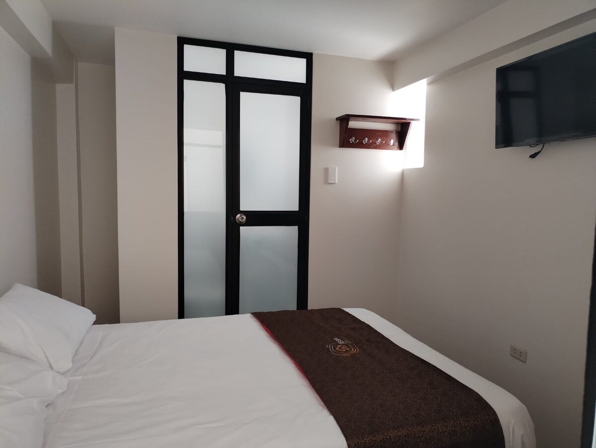 Disfruta de la sencillez de este alojamiento tranquilo y céntrico. Es una habitación muy cómoda, situada a 15 min. de la plaza de armas. La habitación cuenta con baño privado y tiene una cama matrimonial, hervidora y menajería esencial.