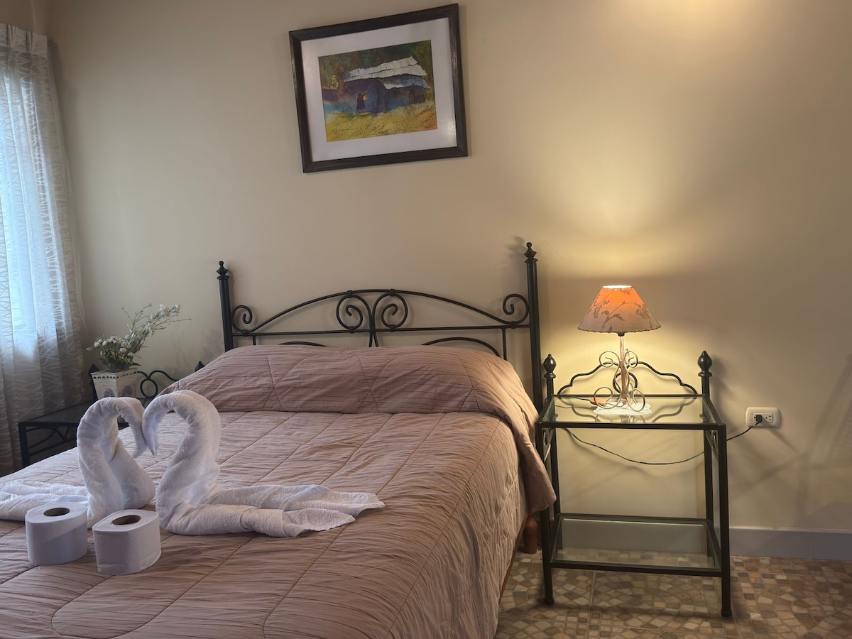 Disfruta de una experiencia con estilo en este alojamiento céntrico. Es una habitación muy cómoda en el primer piso. Situado en un barrio turístico de Huaraz (La Soledad), a poca distancia de la plaza de armas (5 min a pie). este lugar esta cerca a muchos restaurantes y tiendas de conveniencia. En su interior puedes encontrar todo lo necesario para pasar unas vacaciones increíbles. La habitación es con baño privado y tiene una cama matrimonial, microondas, hervidora y menajería esencial.