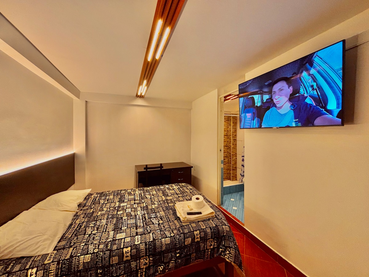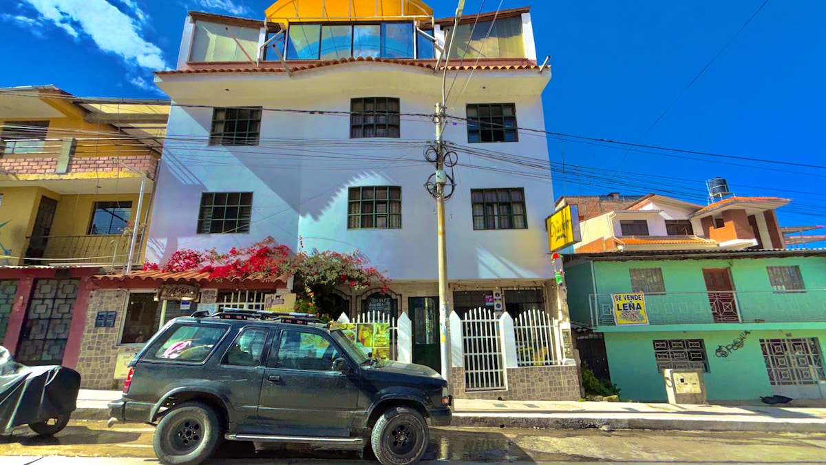 Nos encontramos a 5 minutos caminando de la Plaza de Armas de Huaraz. Contamos con agua caliente las 24 horas. Disfruta del fácil acceso a tiendas y restaurantes populares desde este encantador espacio para quedarte. Se aceptan mascotas bajo un cargo adicional de 50 soles. SOLO MASCOTAS DE TAMAÑO PEQUEÑO.