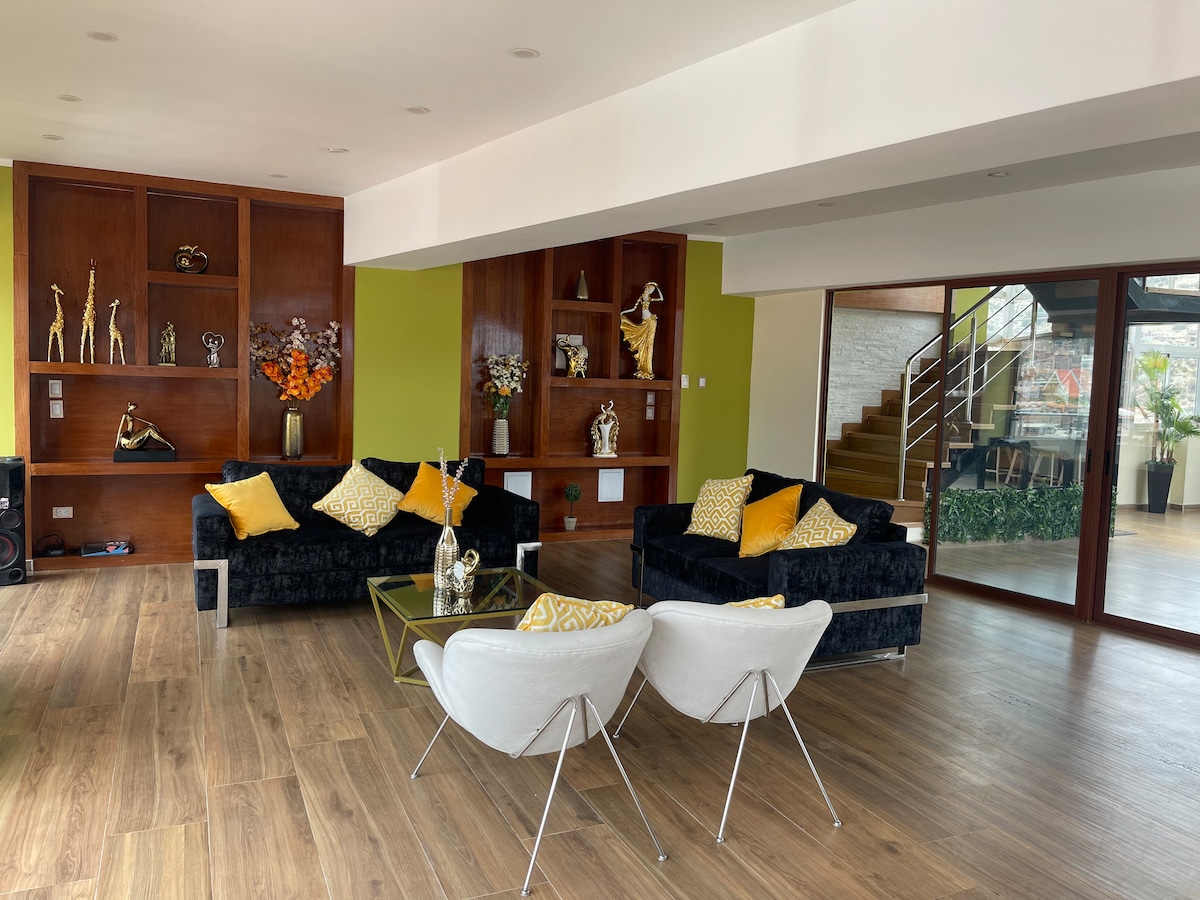 Enjoy the natural and magical atmosphere of the Andes in a modern, spacious apartment with separate living areas, filled with culture, colors, landscapes, and exotic plants that will make your stay cozy—all in a safe, peaceful, and tourist-friendly area. Disfruta lo natural y mágico de los Andes, en un departamento moderno, amplio con ambientes independientes y lleno de cultura, colores, paisajes, plantas exóticas que harán acogedor tus días; todo en una zona segura, tranquila y turística.