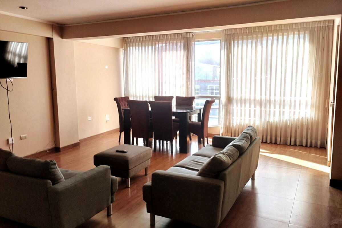 Our apartment is located just a few minutes walk from the Plaza de Armas of Huaraz, in the heart of the city, giving you easy access to the main attractions, restaurants and local stores. The ideal location to enjoy city life and explore Huaraz! Features - Panoramic terrace. - Private garage - Free laundry