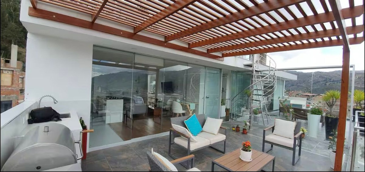Diviértete con toda la familia en este alojamiento con estilo moderno. Estamos a solo 5min de la plaza de armas de Huaraz. Contamos con espacios equipados , Smart TV , jacuzzi y una hermosa vista hacia los nevados de la ciudad . También contamos con servicio de movilidad.
