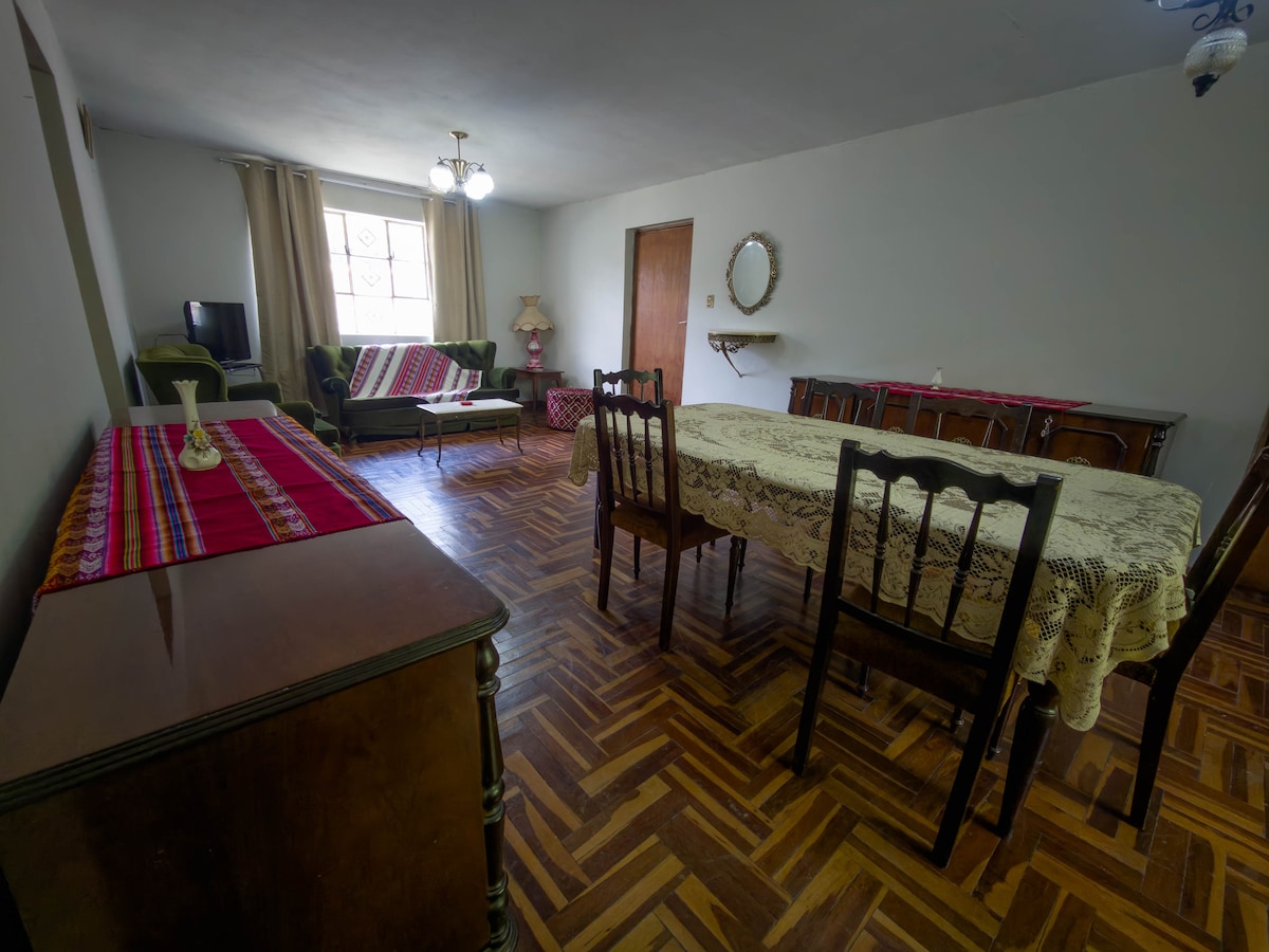 Enjoy the natural and magical atmosphere of the Andes in a modern, spacious apartment with separate living areas, filled with culture, colors, landscapes, and exotic plants that will make your stay cozy—all in a safe, peaceful, and tourist-friendly area. Disfruta lo natural y mágico de los Andes, en un departamento moderno, amplio con ambientes independientes y lleno de cultura, colores, paisajes, plantas exóticas que harán acogedor tus días; todo en una zona segura, tranquila y turística.