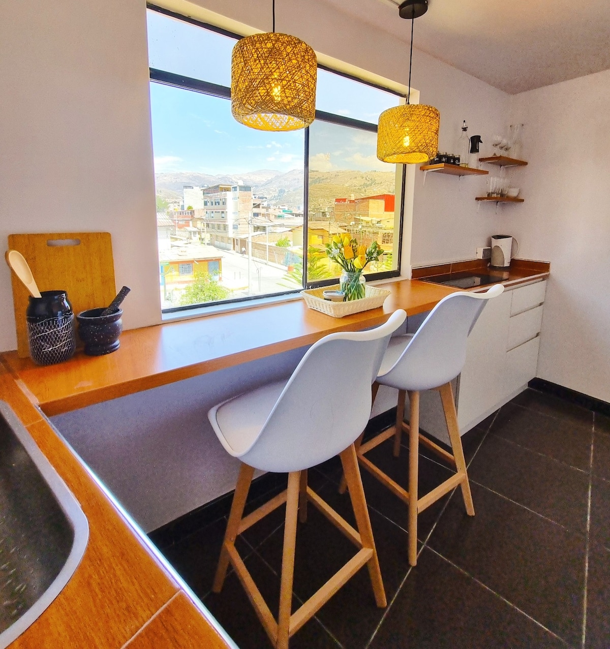 Modern and cozy apartment in the center of Huaraz, located in the safest area of the city, just two blocks from the Main Square. It features 3 bedrooms (2 double beds and 1 single bed), a fully equipped kitchen, living room, dining area, and minibar. 24-hour reception and a space to store luggage. Private parking available 5 minutes away (free) and another option 10 blocks away (S/15 per day). We offer tour packages at special rates. Ideal for those seeking comfort and a great location.