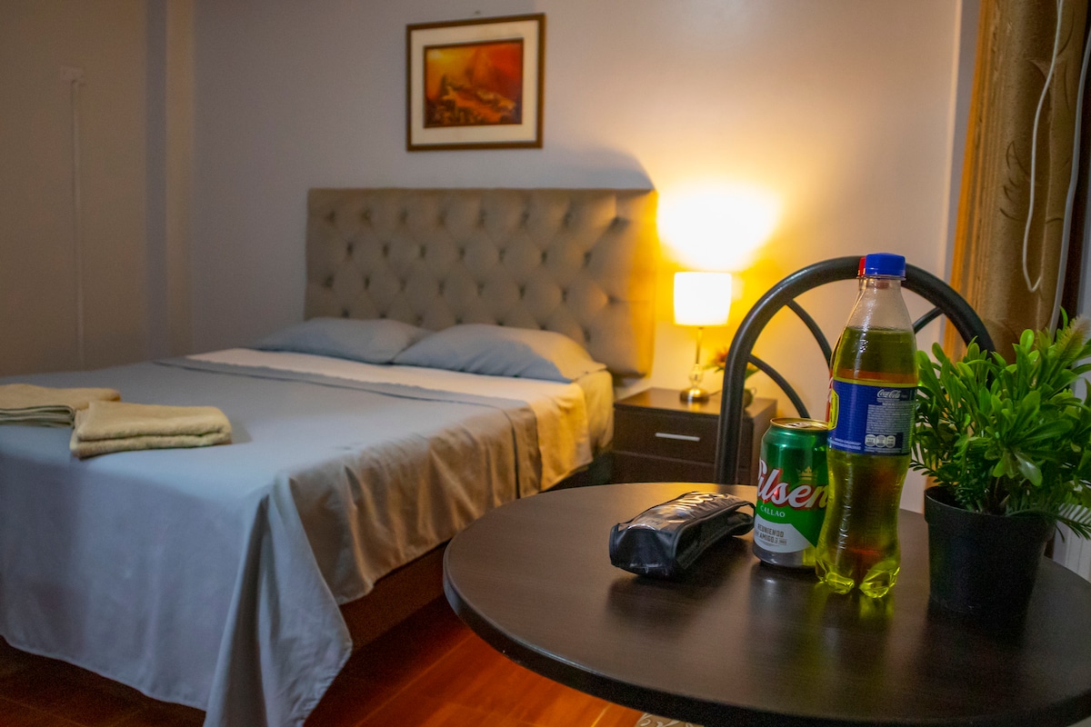 Suite para cuatro personas, con baño privado, salita, friobar. El hotel tiene un cuarto piso donde se encuentra la terraza, cocina, microondas, salon de TV, con una excelente vista de la ciudad. Adicional al hotel tiene 2 salas como ambientes compartidos. Cuenta con cámaras de seguridad a las afueras del mismo. Debajo del mismo se encuentra un mini market y a una cuadra se encuentra su estacionamiento para uso del Hotel María y Casa Quilipe. Se limpia la habitación todos los días.