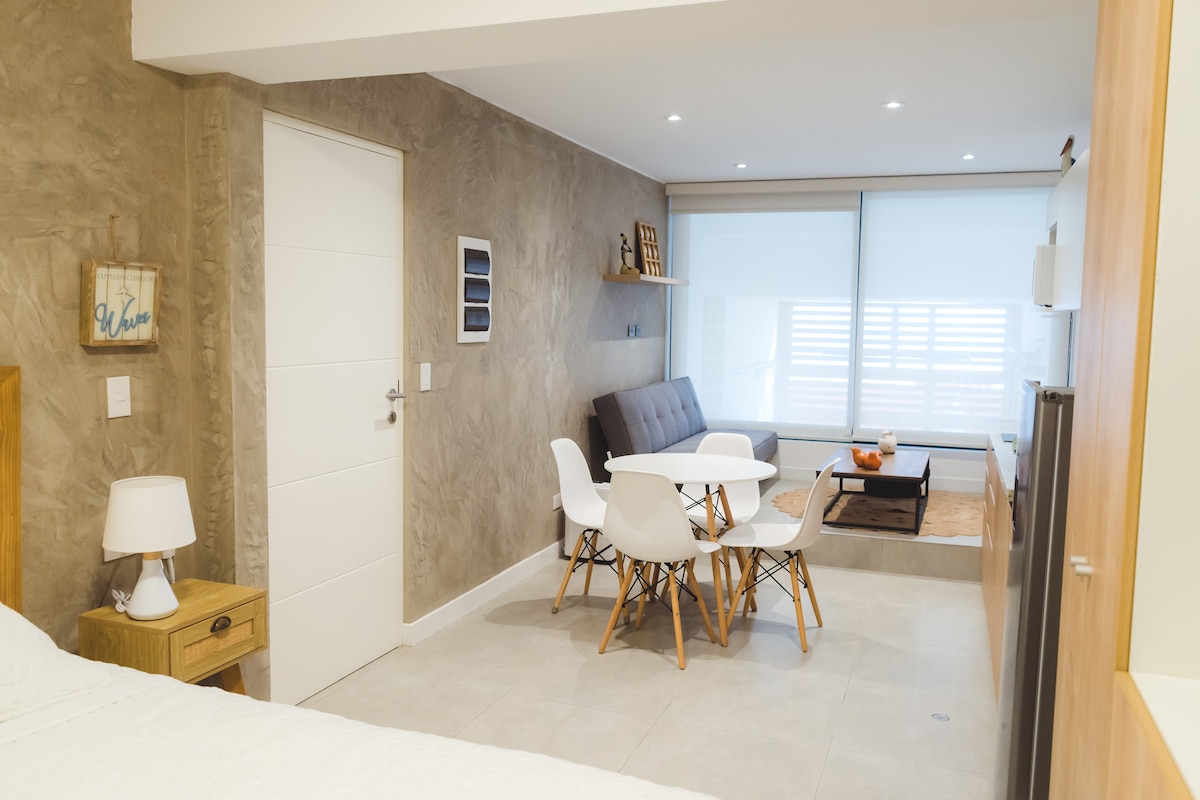 ¡Despierta con el sonido de las olas! Una estadía relajante en este acogedor monoambiente frente al mar, ubicado en el primer piso con acceso directo a la playa. Equipado con una cama queen y un sofá cama, cuenta con cocina completamente equipada, baño privado, Wi-Fi y un proyector para que puedas ver tus series favoritas en Netflix. El espacio es perfecto para descansar, correr buenas olas, trabajar con vista al mar o simplemente desconectarte. -Cama queen y sofá cama de plaza y media.