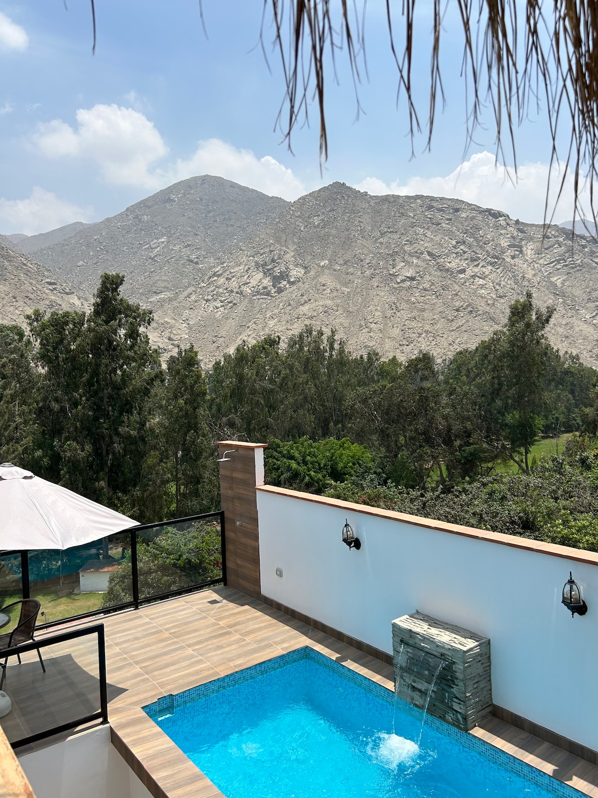 ¡Hola! Somos un hospedaje ubicado en el distrito de Cieneguilla, a tan solo 40 minutos de Lima. Nuestra ubicación es una zona completamente segura y tranquila, además de estar rodeada de naturaleza y hermosas vistas. Contamos con 10 habitaciones (individuales y dobles) cada una con baño privado. Por el momento, solo tenemos 4 habitaciones disponibles.