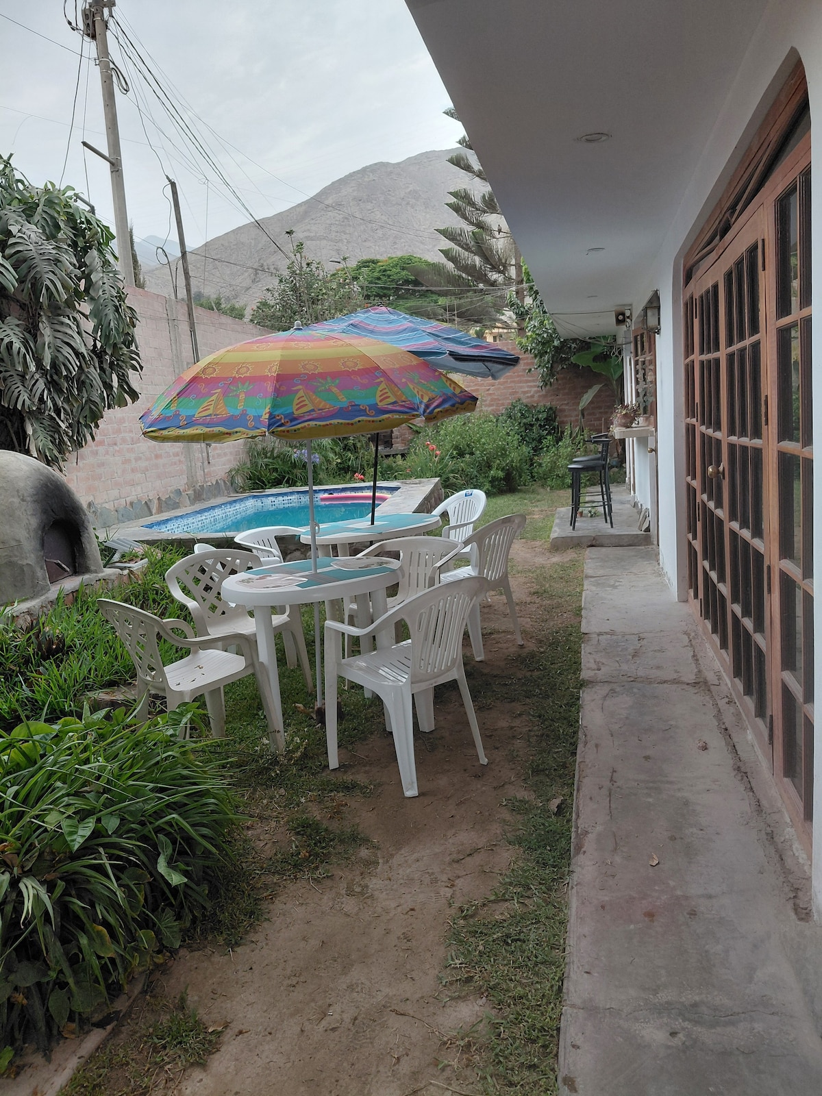 Bungalito rústico y acogedor en Santa Eulalia, a 2 horas de Lima. Clima soleado, lugar tranquilo y rodeado de naturaleza. El bungaló de adobe consta con un cuarto, un baño, una cocina comedor y una terraza con parrilla. En el jardín tenemos perros, gatos, gallinas, patos...Y una hermosa piscina, lugar para hacer parrilla y fogata, y un columpio para que los niños jueguen. ¡Hay con qué ocupar su tiempo!