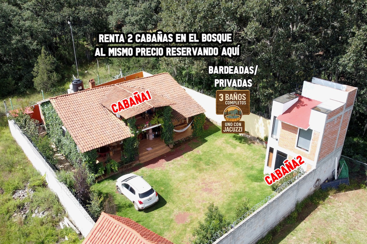 Welcome to the elf cabin! If you are looking for a private place in the middle of nature to enjoy a BBQ, fire, walk, this is the place. The cabin has: a tv with DVDs, projector with netflix, games, electric heaters, full kitchen, wood chimney, grill, fire pit, jacuzzi, sunbed, lookout, potable water filter, wifi and UFO. The use of the temazcal, sauna and heater for jacuzzi at an extra cost.