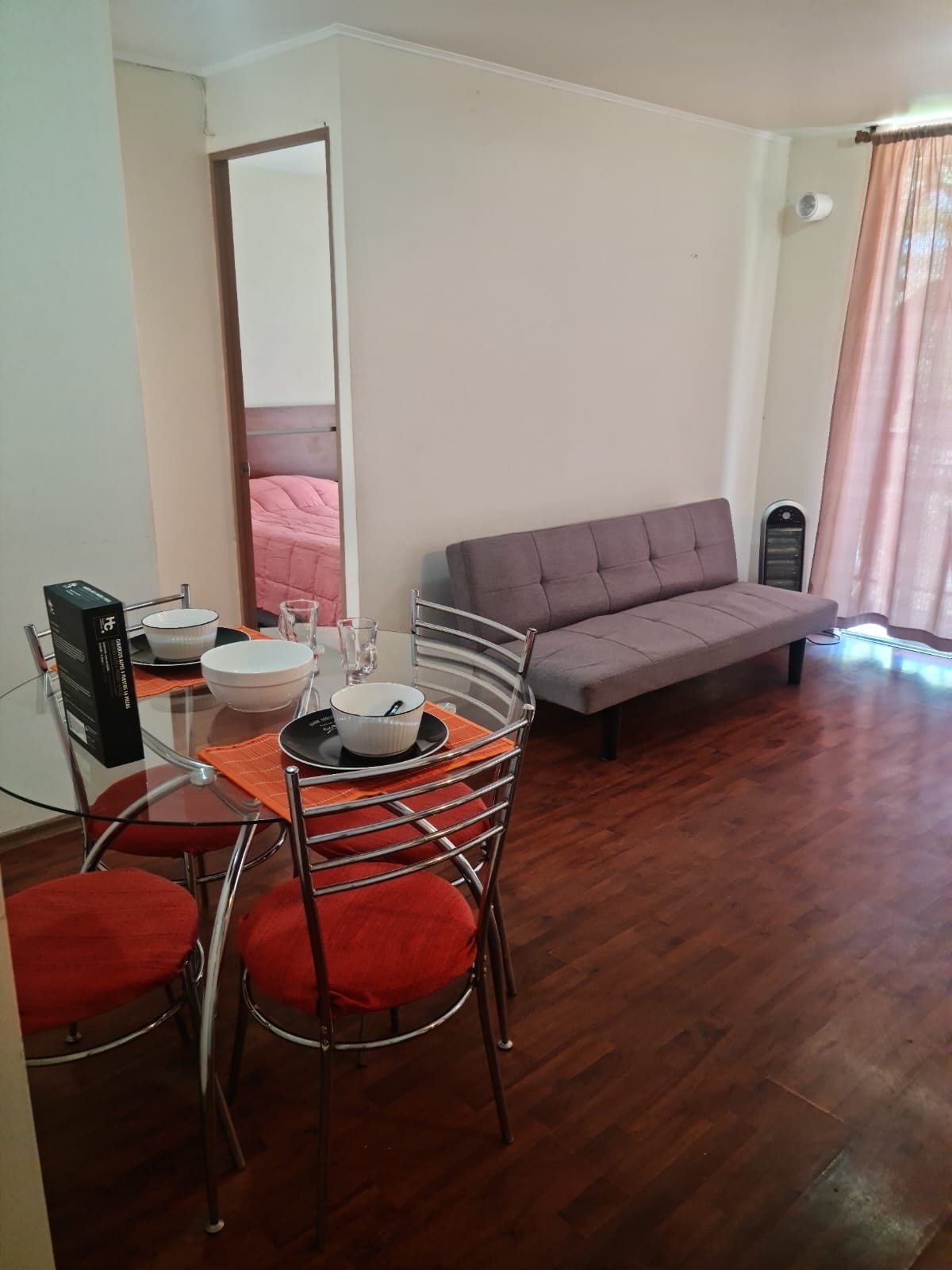 Cómodo departamento en Vallenar con 3 dormitorios y 2 baños, ideal para familias o grupos. Uno de los dormitorios cuenta con televisión, además de un living acogedor con sofá y TV para compartir. Incluye cocina equipada, comedor y estacionamiento privado, brindando tranquilidad y comodidad en tu estadía.