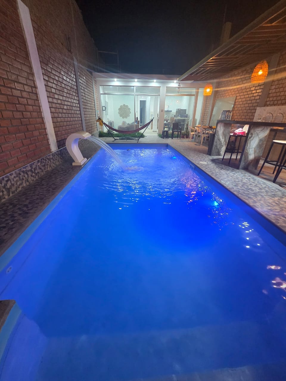 Escápate a la tranquilidad de nuestra casa de campo en Huacho. Tenemos un área privada al aire libre, perfecta para relajarse, compartir en familia y disfrutar de una increíble vista al horizonte. Podrás nadar en una piscina propia, preparar pizzas en horno de barro, hacer parrillas, hacer deporte en mini cancha de grass sintético, divertirte con juegos de sapo, futbolín y disfrutar de la terraza y del jardín. Tenemos lo necesario para que te desconectes y tengas una estadía placentera.