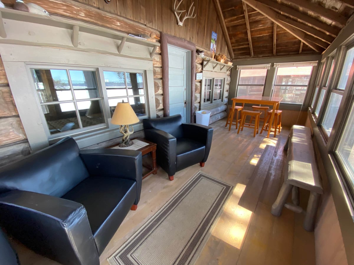 Historic studio log cabin with the perfect porch right on the water. Simple efficiency kitchen and a 1/2 bath. Cabins comes with a picnic table as well. Shower in the lake or our updated bathhouse (with laundry). Enjoy a book in your personal Adirondack chairs, toss a line off the fishing dock, or hike through our private 60 acre forest. Perfect for families, writers, or anyone who wants to reconnect with nature. Swimming raft, canoes, kayaks, fishing boats and pontoons available.