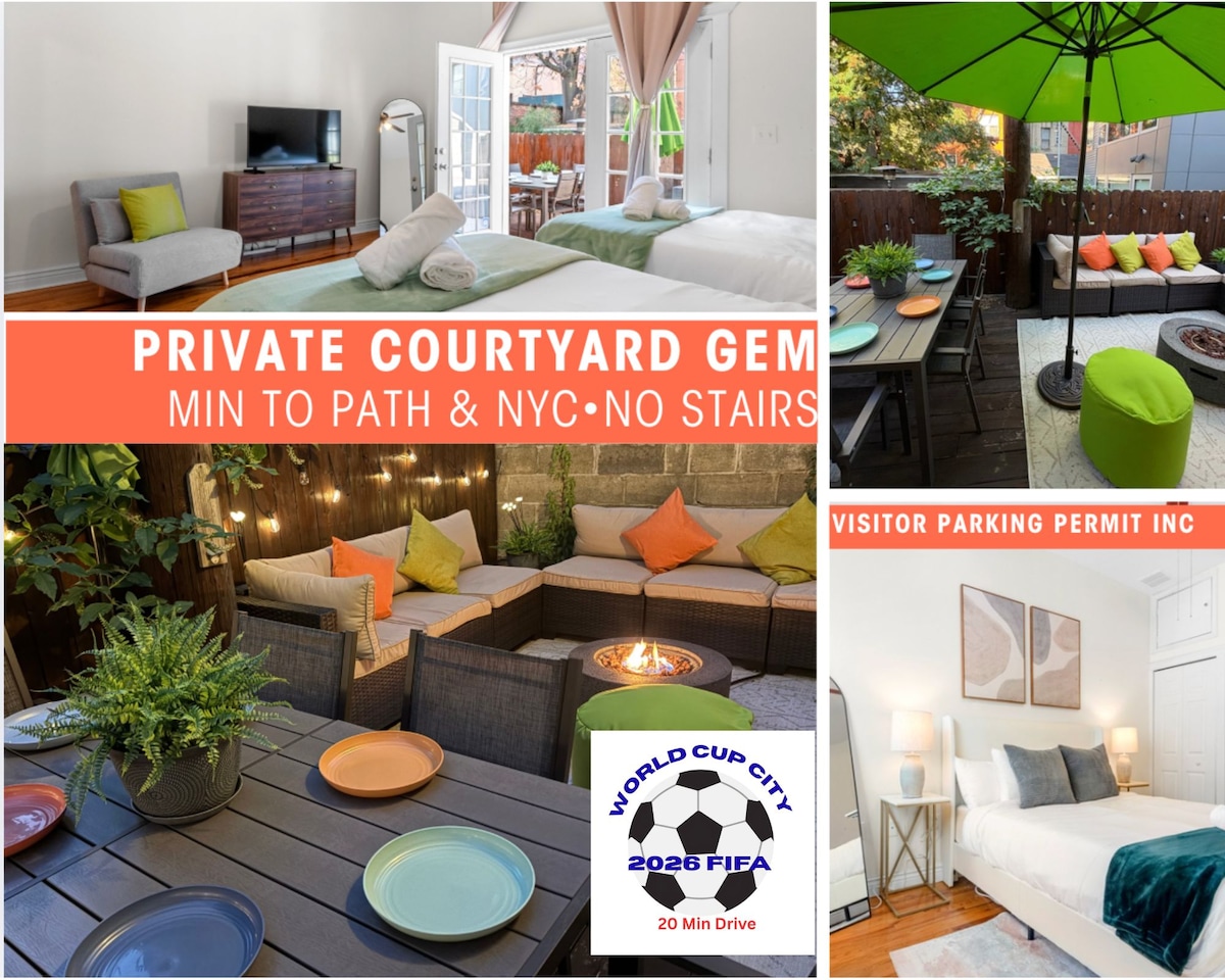 Bring your whole crew. Designer loft fits 6 guests with NYC skyline views, a private patio and everything you need to settle in and explore - for a weekend, a week, or the entire World Cup. 🏆 FIFA WORLD CUP 2026 Getting to MetLife Stadium - ~30 MIN Total 📍Our Property ➨~20 min drive to Secaucus Junction ➨ Board Train to MetLife Stadium (1stop, ~10 min) Secaucus Junction: -Pre-Book parking -Board train (match ticket + Train ticket)