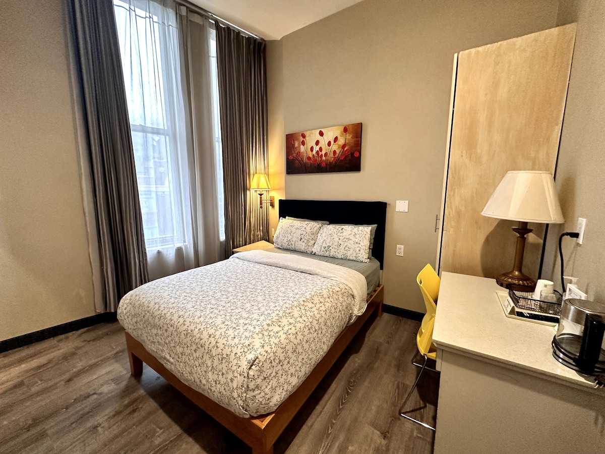 Stay at The Lofts at Kearny—a light-filled blend of classic loft character and clean, comfortable living. This 2BR loft features a sunny open living area, tall ceilings, huge windows, a master bedroom, and a bunk-bed room. With fast WiFi, washer/dryer, full kitchen, and workspace, it's set up for longer stays. Relax in the cozy lounge or head to the shared gym and outdoor terrace with grills. Right near NYC, with more room, more light, and way more calm.