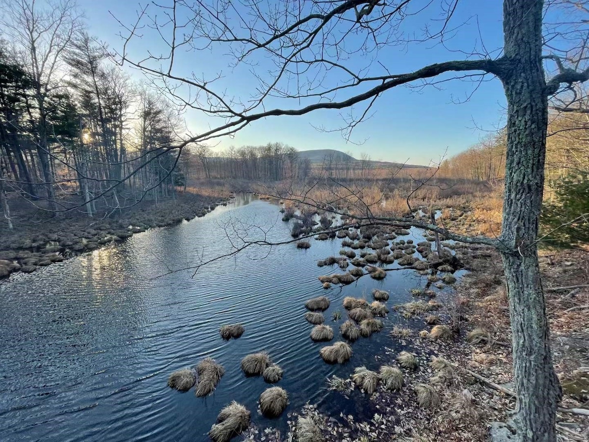 Year-round private Catskills glamping site with stunning sunset views, come stay on an incredible lakefront property nestled in the hills of Sullivan County. Our 16’ 4-season canvas bell tent features wood burning stove, running water, and comfortably sleeps two with a queen sized bed.