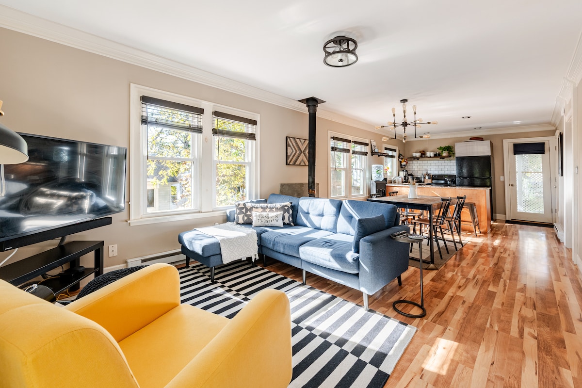 Spend some time in a classic Catskill Bungalow! Beautifully renovated and nestled in the quiet yet all-inclusive Hamlet of Hurleyville; this clean space offers a great place to rest your head and bones. In the cooler months enjoy a beverage by the fireplace or in the warmer months have one on the porch and look out at all the green there is around. Walk to town for dinner, shopping, or a movie at the PAC (VisitHurleyville.org). Please see below for more information on our pet policy.