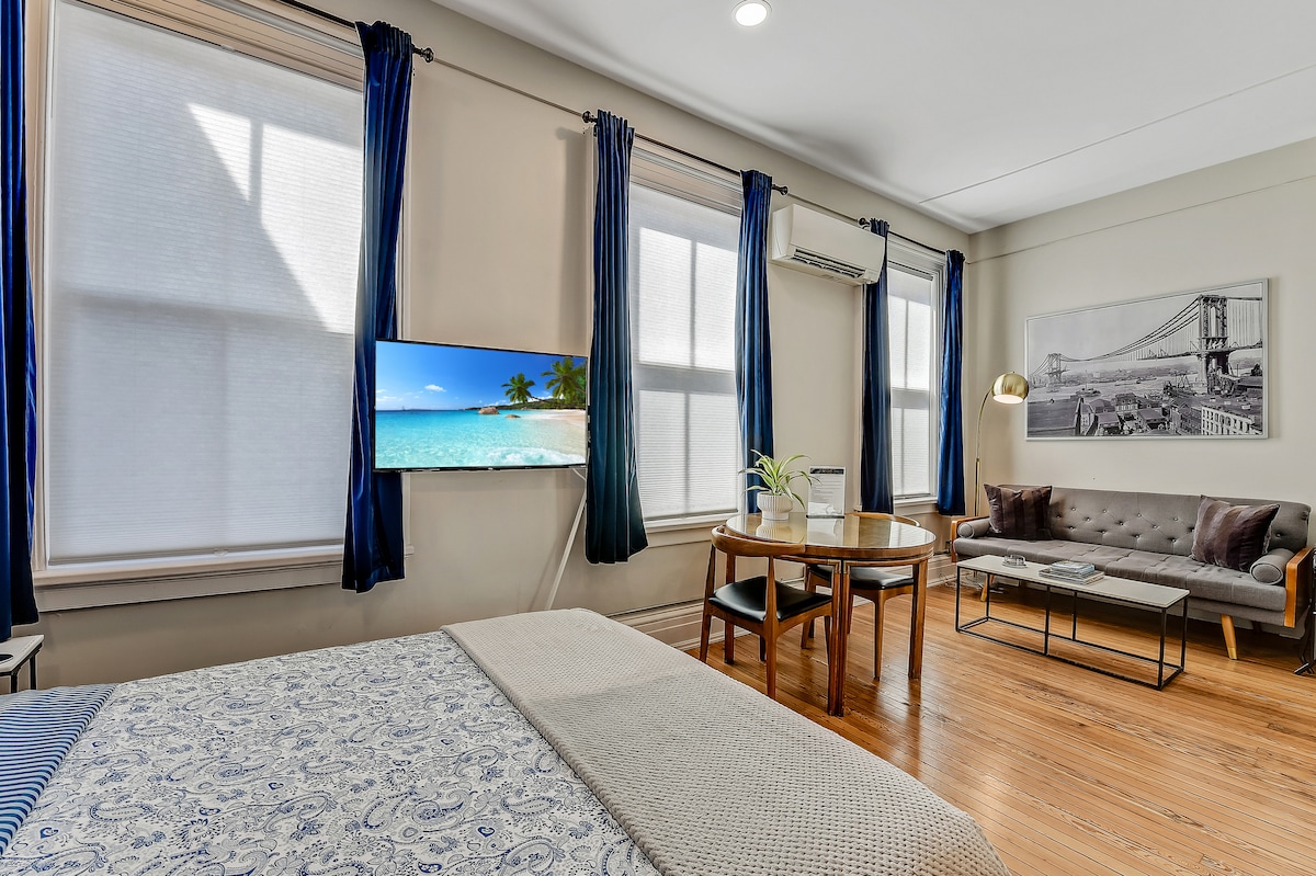 美丽的2卧室+停车场!步行即可到达纽约市,配有特大号床