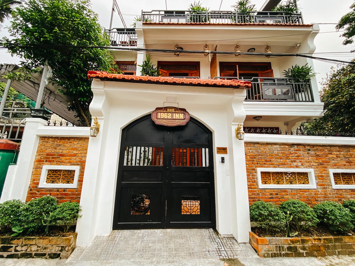 Huế 1962 Inn – Một góc Huế xưa trong lòng Thành Nội Nằm bên trong Thành Nội Huế, Huế 1962 Inn là lựa chọn lý tưởng cho những ai muốn sống chậm, yên tĩnh và cảm nhận Huế như người địa phương. Buổi sáng, bạn có thể thức dậy trong không gian nhẹ nhàng, nghe tiếng chim và nhịp sống chậm rãi của khu dân cư Thành Nội. Chỉ vài phút đi bộ hoặc xe đạp là bạn đã đến Đại Nội, chợ địa phương, quán ăn Huế truyền thống và những con đường rất “Huế” mà ít khách du lịch biết đến.