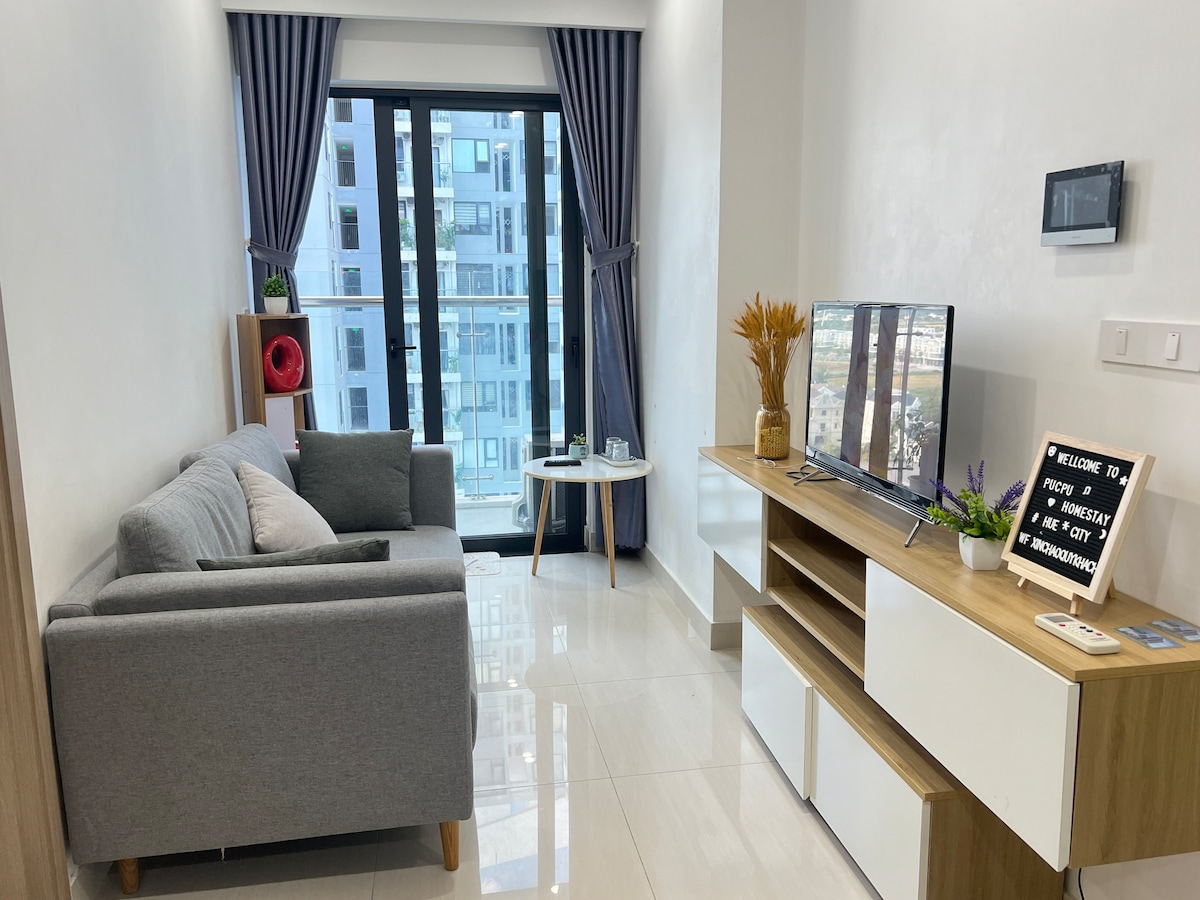 PucPu Homestay 🏡Nera Garden 1 - Tố Hữu, Tp Huế. 📍Trung tâm Thành phố. 📍Đến khu phố Tây chỉ 3 phút đi xe. 📍Đến Đại Nội Huế chỉ 7 phút đi xe. 🍄Căn hộ có 2PN, 2WC, phòng xinh giá rẻ. 🍄Đầy đủ tiện nghi (điều hoà, tivi, tủ lạnh, máy giặt, bếp).... ban công view hồ bơi, thành phố. 🍄 Free bể bơi cực đẹp, Free phòng gym. 🍄 An ninh 24/24, chỗ giữ xe rộng rãi. 🍄 Cho thuê xe máy, dịch vụ xe oto đưa đón sân bay. 🍄 Home tất cả đều mới, giá cực kỳ hấp dẫn, chỉ từ 2xx 🐟/người