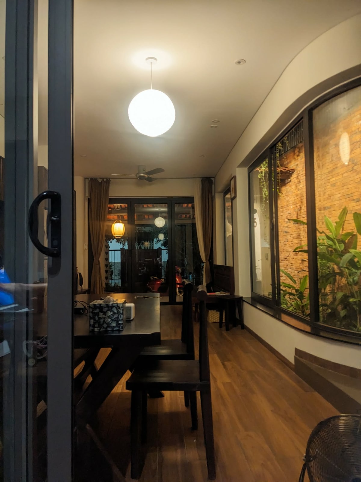 Tìm về an nhiên dưới mái ngói đỏ. Căn nhà là bản giao hưởng của gỗ ấm, gốm thô và những bức tranh sơn dầu đầy cảm xúc. Sân vườn xanh mát với lu cá nhỏ và tiếng xích mưa êm đềm mỗi khi cơn mưa ghé thăm. Một không gian mộc mạc, tĩnh lặng, nơi bạn được thư giãn ! A nostalgic retreat under tiled roofs. Enjoy a cozy blend of wood, ceramics, and oil paintings. Relax in our lush garden with a fish jar and the soothing sound of rain chains. A rustic, peaceful sanctuary to reconnect with nature and art.