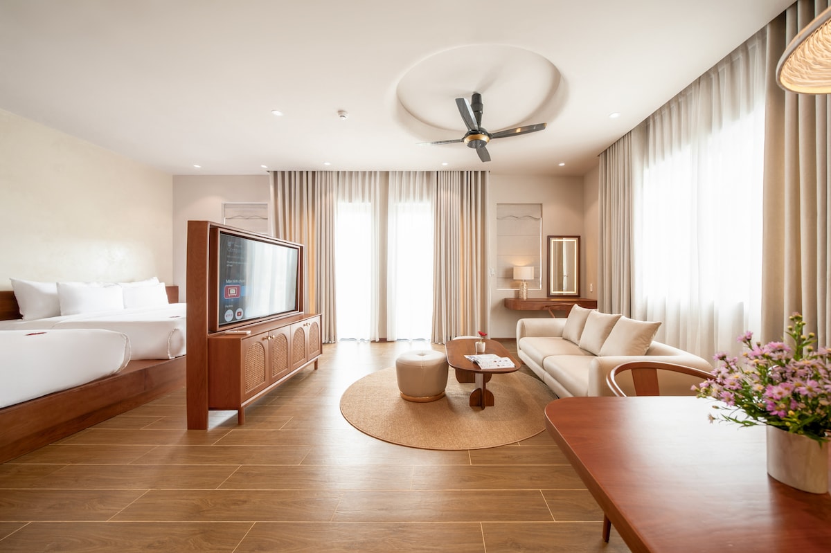 Escape to our Hue haven: 1500m2 Zen garden, riverfront, lotus lake views. Luxe rooms with private tubs & steam. Cozy library in nature. Perfect for soul-refreshing retreats. Unwind in tranquil beauty, recharge your spirit. Your peaceful getaway awaits!