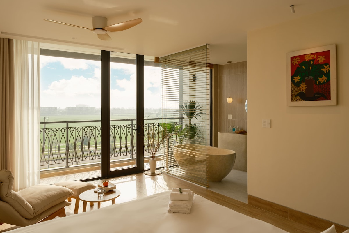 “Bospace is designed to calm the mind and delight the soul. The studio is finished to a high standard, featuring a king-sized bed, a comfy sofa, a kitchen, air conditioning, a smart TV, etc It’s something quite special. Located in a residential area, guests come to enjoy fresh air, tranquility, and unique natural beauty. The downtown area is a 20-minute walk away. Trang Tien Bridge and the Imperial City are about 10 minutes by motorbike and Hue Railway Station is around 10 minutes by car.”