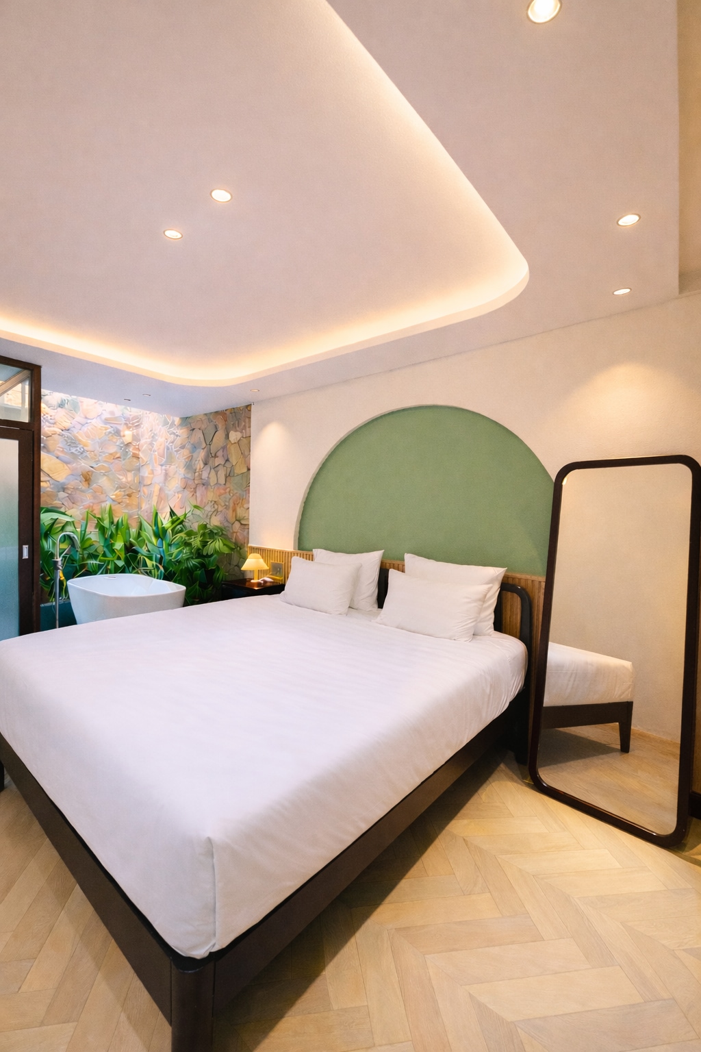 Tận hưởng kỳ nghỉ tuyệt vời tại Êm Villa – không gian lý tưởng cho gia đình, nhóm bạn đông người: • 8 phòng ngủ, 11 giường lớn – thoải mái nghỉ ngơi, sức chứa lớn • Hồ bơi rộng 150m² – tha hồ vui chơi, check-in sống ảo • Không gian tiệc tùng linh hoạt với bàn ghế sẵn trong và ngoài trời • Bếp đầy đủ dụng cụ nấu nướng và ăn uống, chỉ cần xách đồ đến là có thể vào bếp ngay • Karaoke xịn xò, bếp nướng BBQ ngoài trời – sẵn sàng cho những buổi tối quây quần đáng nhớ