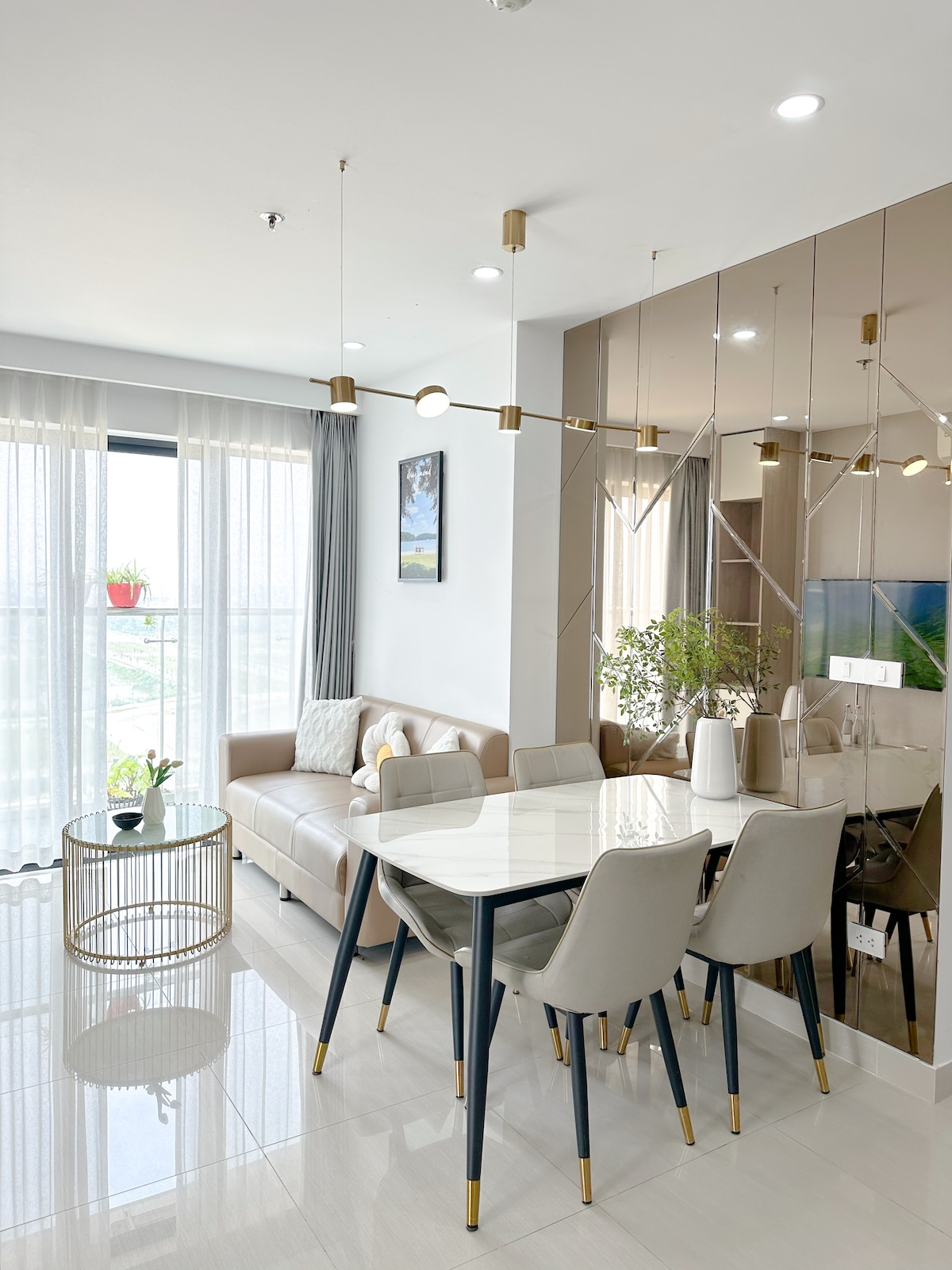 Cả nhóm sẽ dễ dàng tiếp cận mọi địa điểm từ chỗ ở nằm tại vị trí trung tâm này. Căn hộ với view triệu đô, nhìn ra là những căn nhà kiến trúc pháp rất cổ điển, nhìn ra xa là trung tâm Aeon Mall sáng rực khi về đêm