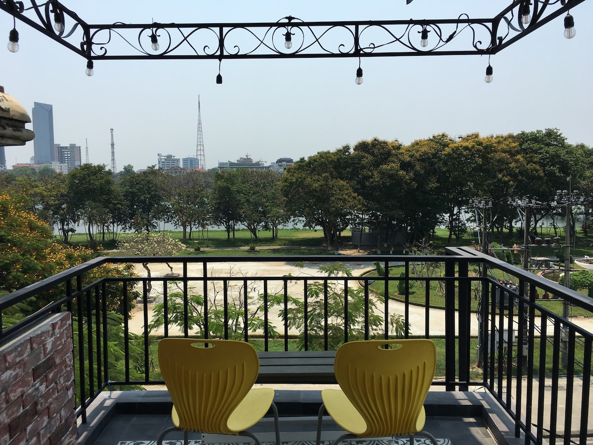 The private house is near by the perfume river and you can see it when lie down on the bed. It is on the main road in the centre so easy for you moving by walk, car... is ok. It is close to the Citadel, The Dong Ba market( biggest and oldest market in Hue) and super market, It take about 3 minutes by walk to that places. The ATM is outside, you can drawn maximum 2.000.000 vnd/times but you can drawn it anytime. It is same charge with the bank. And last one is me! I'm very helpful and welcome.