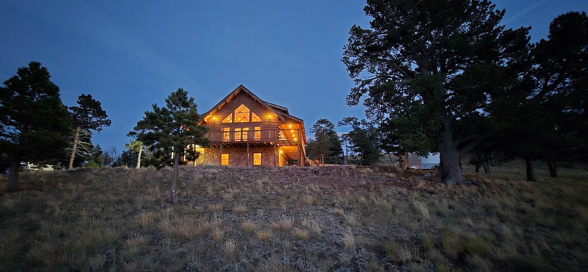 Cozy, Rustic Oak Log cabin within a very quiet natural surrounding for a Mountain getaway! Tall Ponderosa pines and wildlife everywhere. A billion stars at night. A chance to "unplug" and enjoy natures beauty of the Spanish Peaks and Sangre de Cristo range. Dog friendly. Great place to stop if you are driving thru Colorado this summer. No more than 6 in the cabin but Plenty of room for parking your own RV’s or pitching tents for small added fees. Total of 12 guests. No RV hookups,dry camping