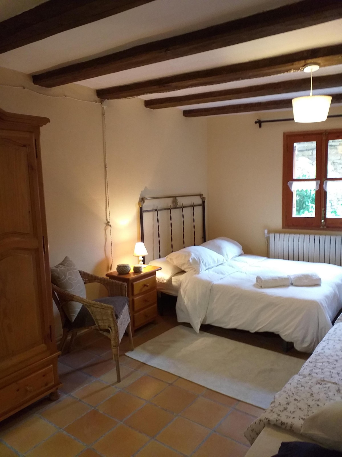 La casa es una antigua borda restaurada por los propietarios, que conserva su estilo original, con paredes de piedra y vigas de madera. Tenemos dos casas situadas en diferentes edificios contiguos, una de una planta y otra duplex. Desde el salón comedor se accede a los amplios jardines, individuales y vallados, en los que se dispone de mobiliario de jardín y barbacoas. También es posible aparcar en ellos. Se admiten mascotas.
