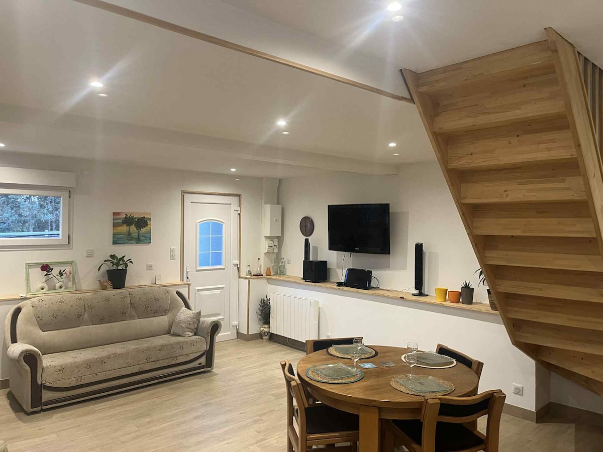 Cette maison d'hôte de 35m² vous immerge en pleine forêt avec tout le confort moderne. Nous vous proposons un grand lit de 160x200 avec un matelas de qualité. Une cuisine complète et une terrasse privée dans la forêt. A la lisière, vous disposez d'un transat suspendu et d'une table de picnic dans la forêt. Connexion internet par fibre : télévision, wifi 6 et ethernet à plus de 800Mpbs. Au robinet, une eau pure : filtrée à 0,5 microns et vivifiée par le procédé Grander.