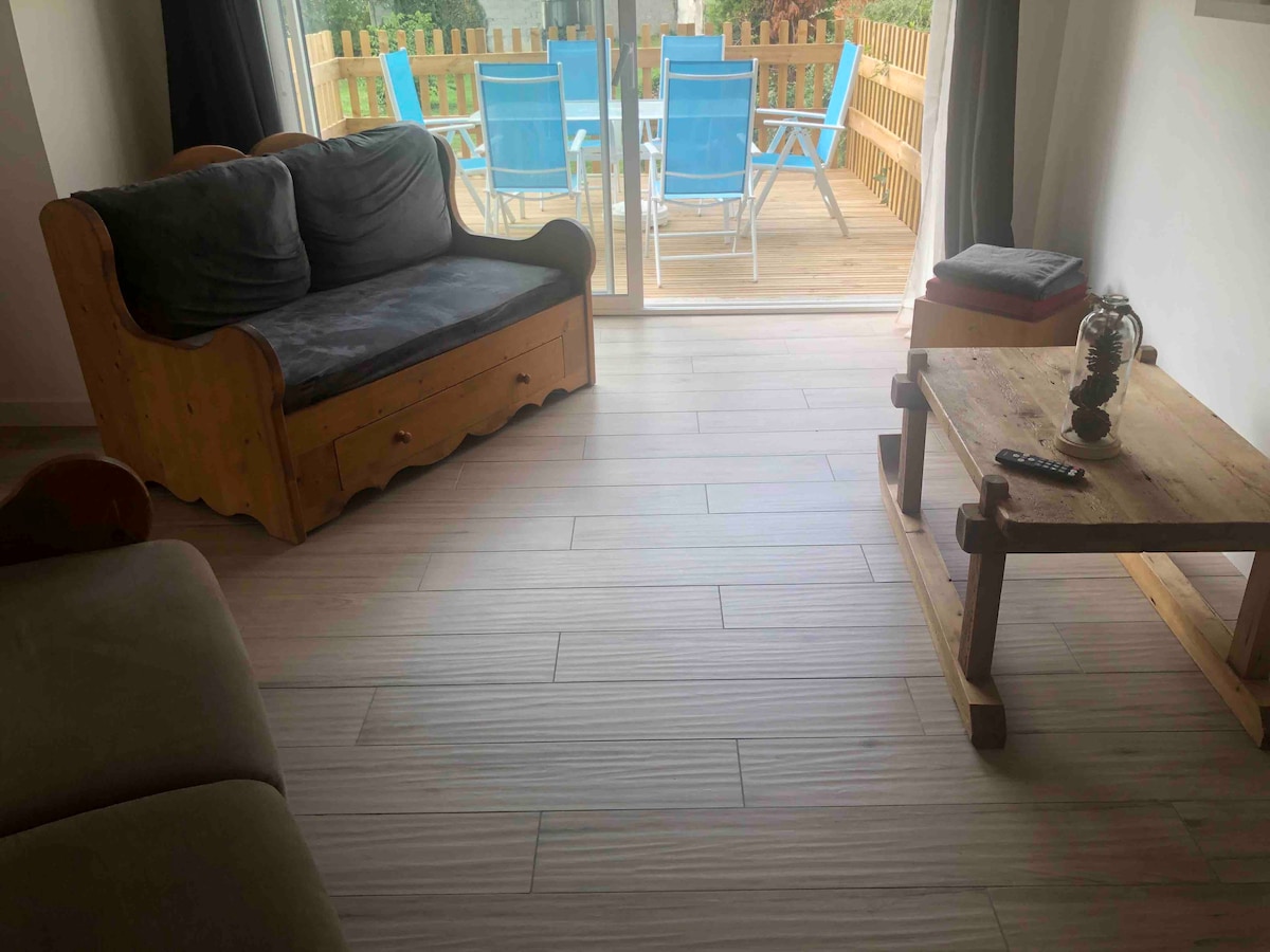 Comme une petite maison, dans un village à proximité de Grenoble, studio indépendant tout équipé pour profiter d'une halte reposante. Vous pouvez profiter prendre un verre ou vos repas sur la terrasse . Vous trouverez des petits commerces et des pizzas à emporter à proximité. Petit déjeuner compris, avec café et thé à disposition, confiture et miel. La boulangerie du village est à 20 mètres pour le pain frais du matin à partir de 6h30.