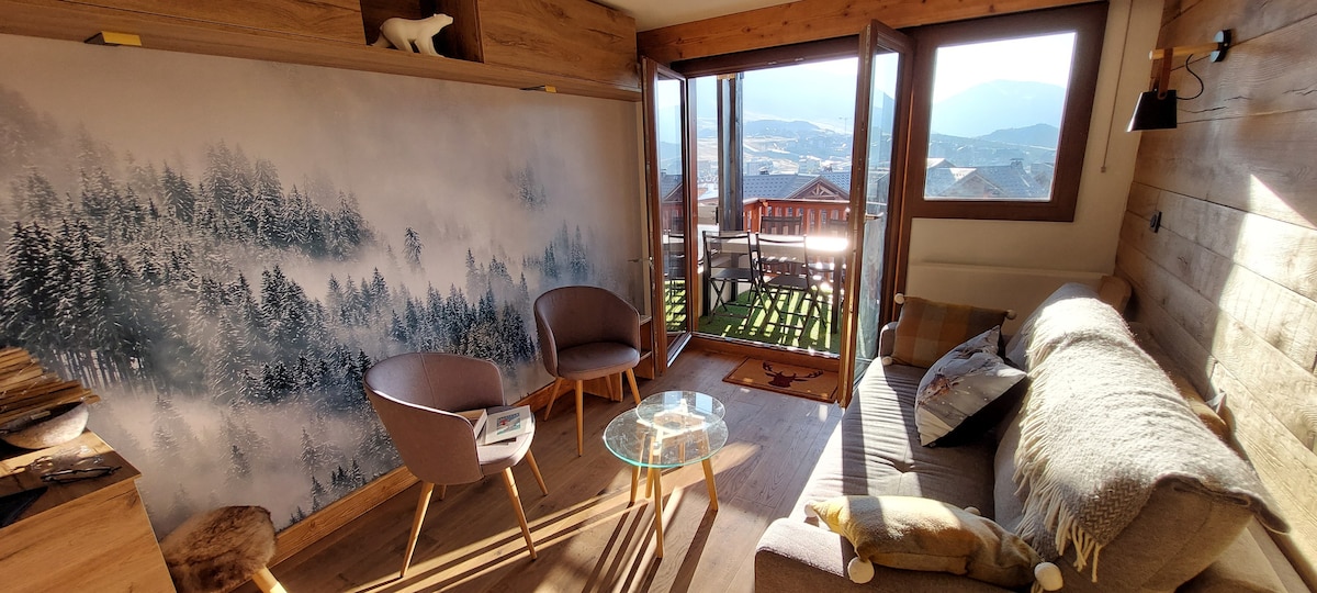 Saisissez l'opportunité de vivre un séjour inoubliable à l’Alpe d’Huez dans notre appartement « La terrasse de l’Alpe » de la Résidence Le Phoenix III, Résidence de Standing au pied des pistes équipée d’un espace Welness et d’un service de massage. Doté de prestations haut de gamme, ce lieu d'exception offre une vue imprenable sur les pistes, un intérieur élégant et chaleureux, ainsi que des équipements entièrement neufs. Vivez l'expérience du ski dans le confort absolu.