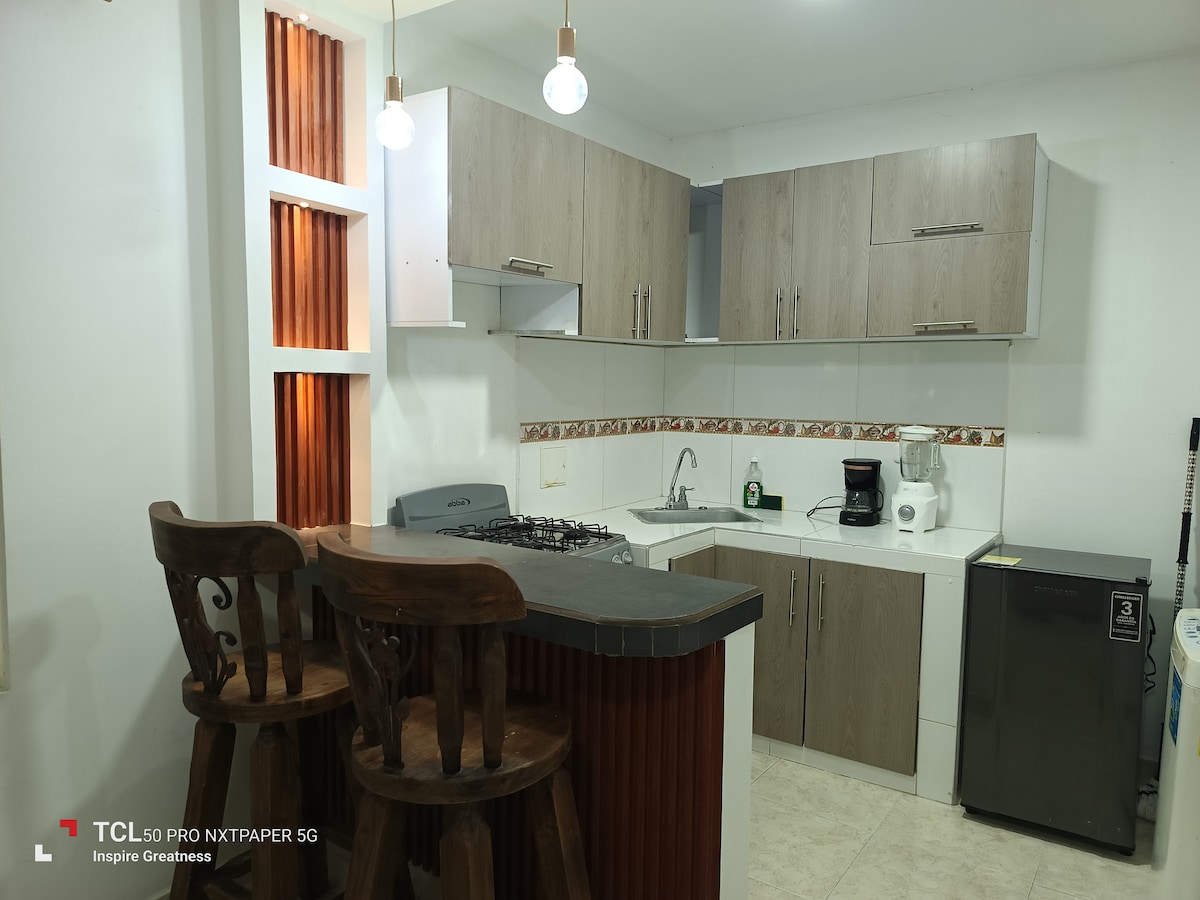 Hermoso apartamento con dos habitaciones disponibles en Rivera-Huila para vacacionar, a 10 minutos en moto a los termales los ángeles, 5 minutos caminando al centro del pueblo y a la plaza principal, 45 minutos a Neiva-Huila, 4 horas a San Agustín y 2 Horas al desierto de la tatacoa. Con una hermosa vista hacia las montañas. Cocina equipada con air fryer, arroceras, cafetera, tetera para hervir agua, lavadora y tendedero de ropa. Vigilancia 24 horas y parqueadero privado para motos.