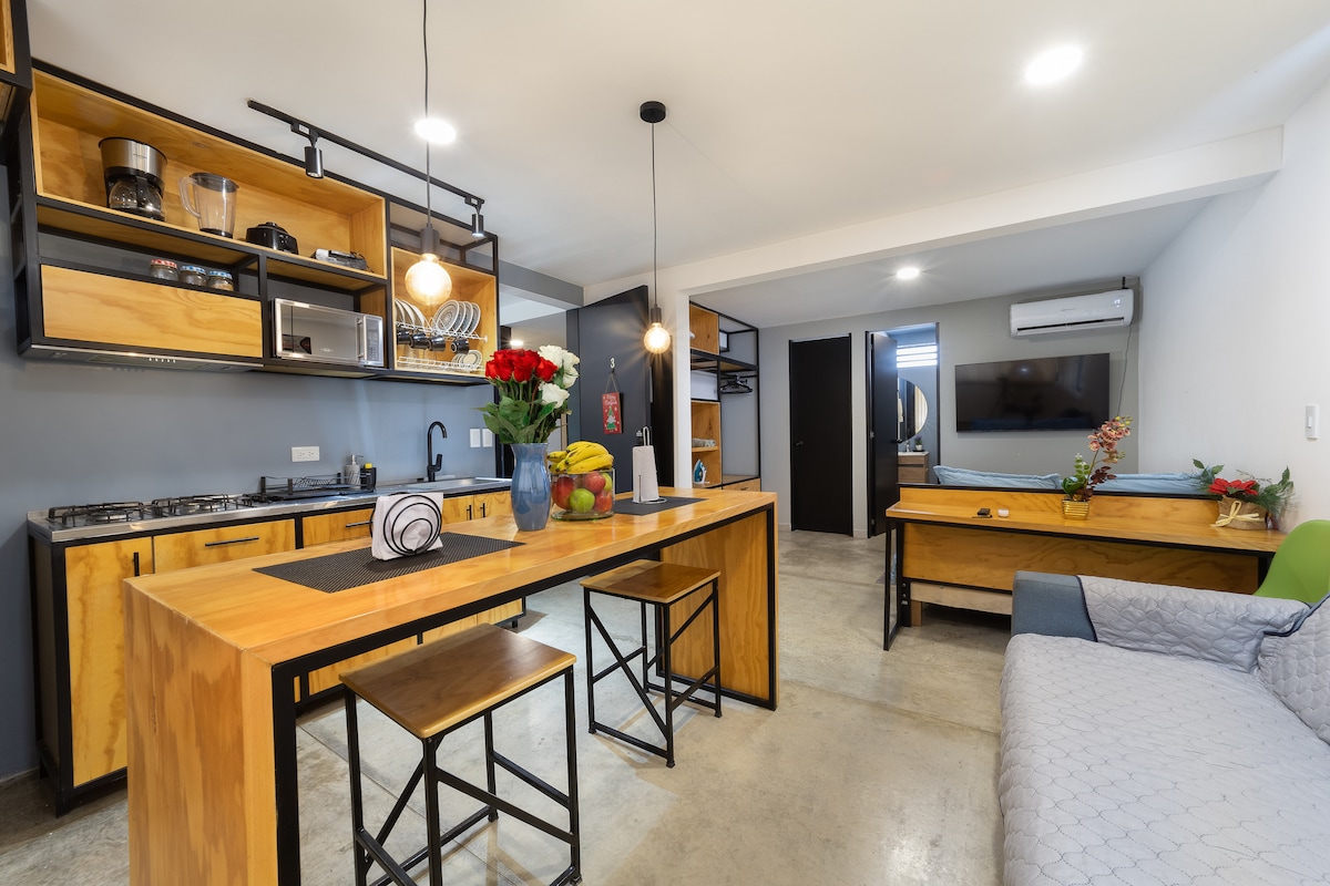 ** UNIDAD EXCLUSIVA SIN CARGOS POR SERVICIO DE AIRBNB ** Disfruta este dúplex de 24 m² + 14 m² de mezzanine (altura 1,85 m), con un moderno diseño industrial y ambiente tranquilo. Ubicado a solo 5 minutos a pie de Granada el barrio más vibrante de la ciudad, lleno de gastronomía y cultura. Además, estarás cerca de los principales puntos turísticos, permitiéndote explorar la ciudad con facilidad y comodidad. ¡Una experiencia única en la mejor ubicación!