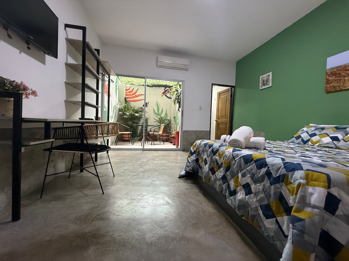 Espacio moderno que combina hotel boutique, café de barista, oficina de negocios y coworking en el emblemático barrio Granada. La habitación Cama doble (160 cm), A/C, TV, perchero, caja de seguridad, ropa de cama hotelera y toallas. Baño: equipado con ducha y agua caliente. Espacios comunes Café & coworking (consumos a la carta; salas de juntas bajo reserva). Terraza con zonas de trabajo y descanso. Información útil Edificio sin ascensor, Ubicada en la primera planta.