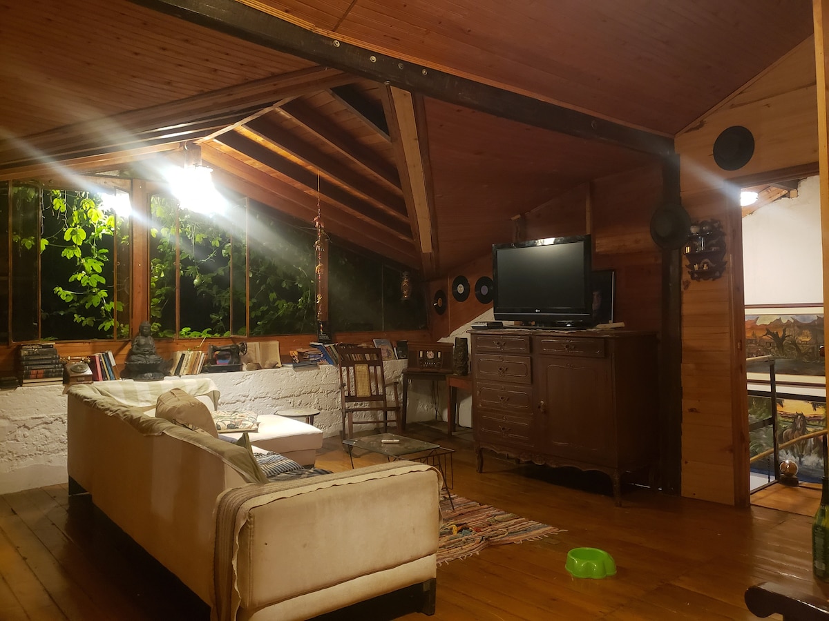 Chalet para 2 parejas o una pareja con 2 hijos. Si son más de 4 personas, pueden reservar junto con nuestra propiedad en el segundo piso, Cabaña vía al Mar, para alojar hasta 8 personas (total). Temperatura promedio de 23 grados. Zona tranquila y segura con paisaje de montaña. A 30 minutos de Cali. Buenos restaurantes y rutas de senderismo cercanas. Zona de barbecue compartida. Precio fijo para 2 personas (y niños <12 años). Para más huéspedes se cobra 100,000 pesos por huésped extra, por noche.