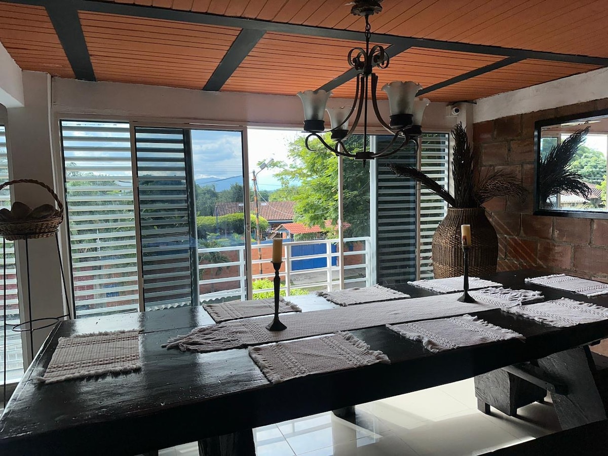 Relájate con toda la familia en este alojamiento donde la tranquilidad se respira, contacto con la naturaleza espacios de zonas verdes amplios, chimenea interior, asado para compartir en familia o integraciones empresariales, espacioso, clima cálido y frío en las noches, a 45 minutos de Cali a 20 minutos de Yumbo, ideal para descansar de la ciudad, teletrabajar, balcón con hermosa vista, está equipada con todo lo necesario, 2 pisos, 3 amplias habitaciones se pueden hospedar hasta 13 huéspedes.