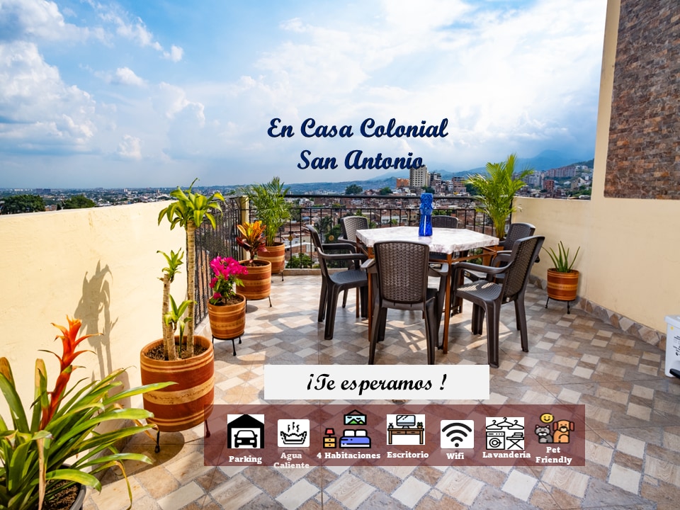 ★Location, Location, Location.★ Welcome to your spacious home away from home in the heart of Cali! This 1775 sq ft apartment, located in El Peñón, a safe and gastronomic neighborhood, offers everything you need for a comfortable stay. It's just across the street from San Antonio and within walking distance to major city attractions. The apartment features a private patio with gym and jacuzzi, a king-size bed, fully stocked kitchen, safety box, balcony, 250 Mbps WiFi, and two dedicated workspaces