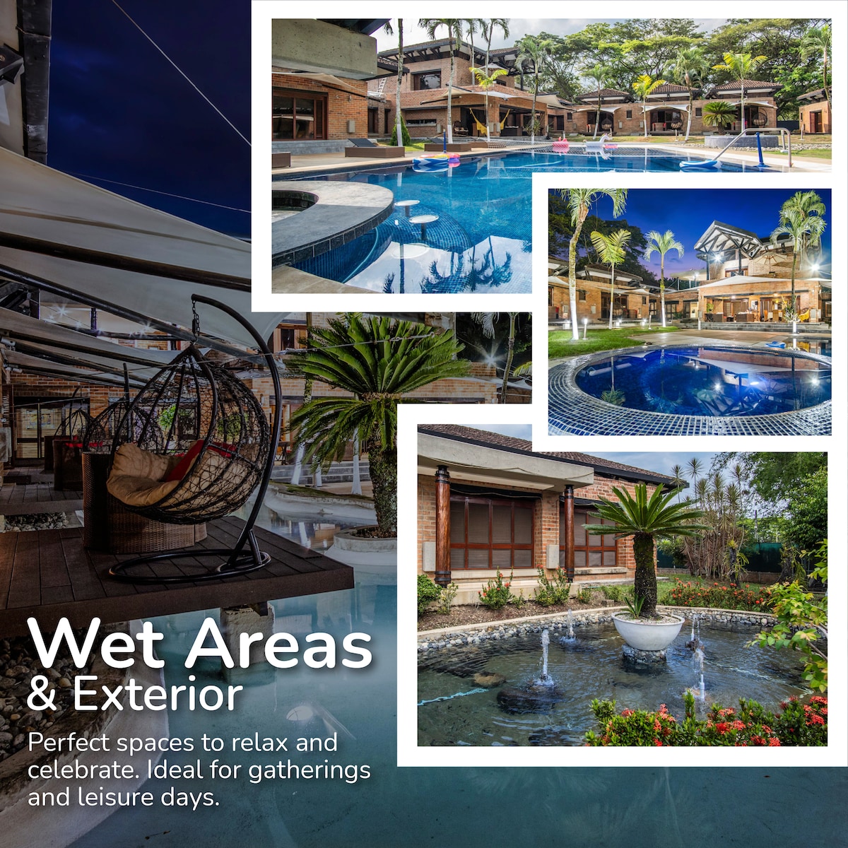 Finca ubicada a solo 7 minutos de Cali y sin peaje, esta finca es ideal para familias, amigos o eventos especiales. Capacidad para 20 personas , con 6 habitaciones, 3 camarotes, cama auxiliar, 6 camas adicionales, 5 baños, sala y cocina amplia, comedor de 10 puestos, wifi y excelente iluminación. Zona exterior con piscina, cancha sintética, juegos infantiles, cocina para asados, salón insonorizado, hamaca, amplio parqueadero y acceso a río y lago en parcelación segura y rodeada de naturaleza.