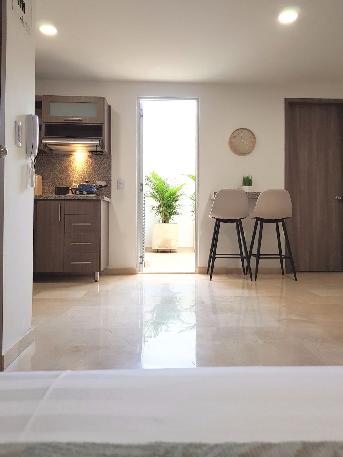 Granada 17.22 | Boutique Stays Enjoy Cali this 63mtr2 apartment in Granada, the best "Zona Rosa" (lively area). Modern and luxurious design offering 100% autonomous access, guaranteeing your privacy and security. AMENITIES: Equipped Kitchen Fiber Optic WiFi Desk A/C Smart TV Queen Bed Hot Water 2 Bathrooms Sofa Bed Ideal for couples, friends, or family. Immerse yourself in the cultural and gastronomic life, bars, and shops at hand. Just minutes from Boulevard del Río and La Ermita Church.