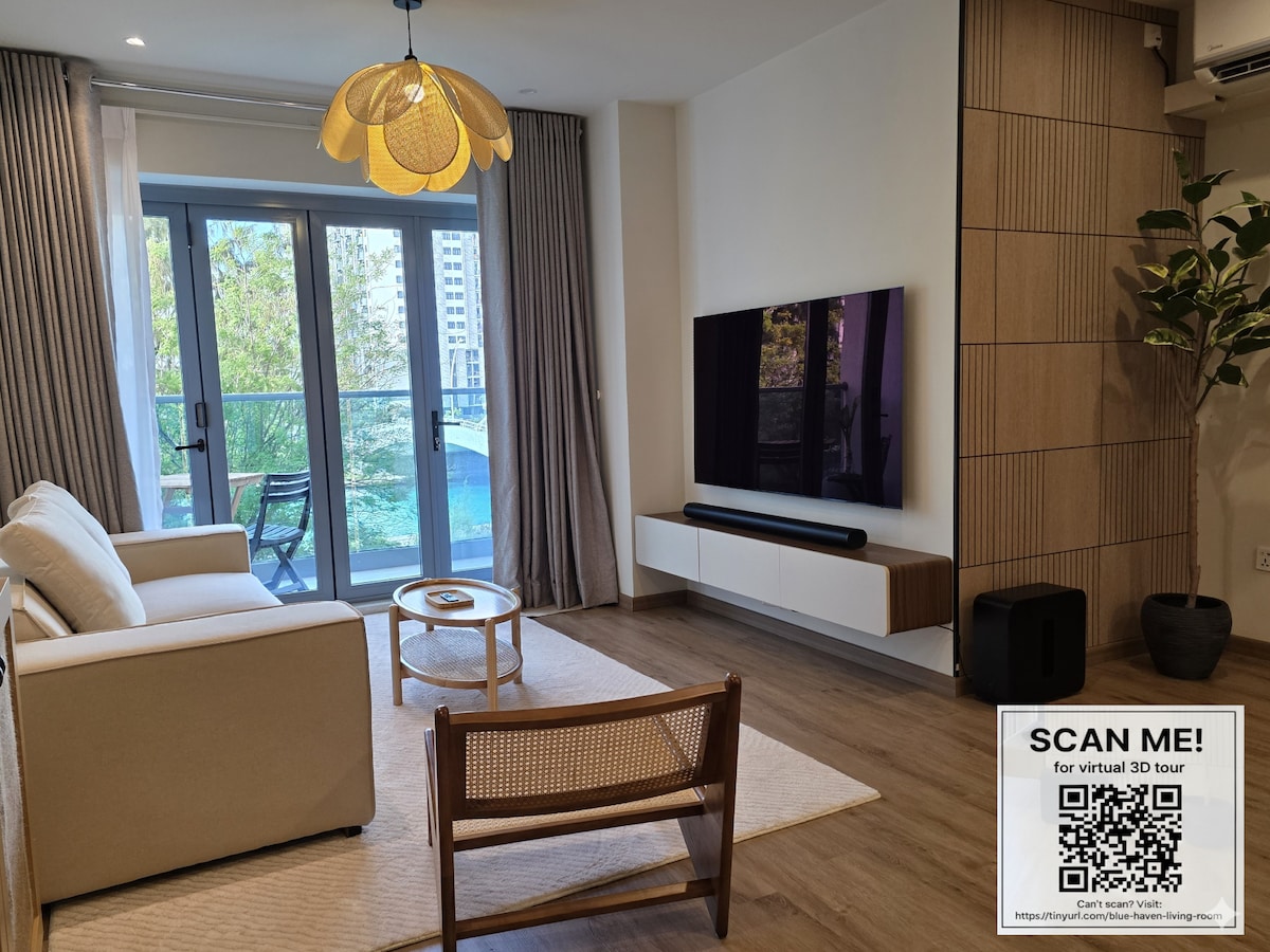 Escape to our exquisite, designer 2-bedroom apartment located in the prestigious Blue Haven Residences in Hulhumale'. Perfectly crafted for the discerning traveler, this luxury retreat blends modern minimalism with warm, tropical accents. Enjoy the bright, airy atmosphere featuring natural wood tones, custom rattan furnishings, and chic, comfortable seating. Featuring a fully equipped kitchen, high-speed Wi-Fi, and plush, high-end linens for a perfect night's rest.